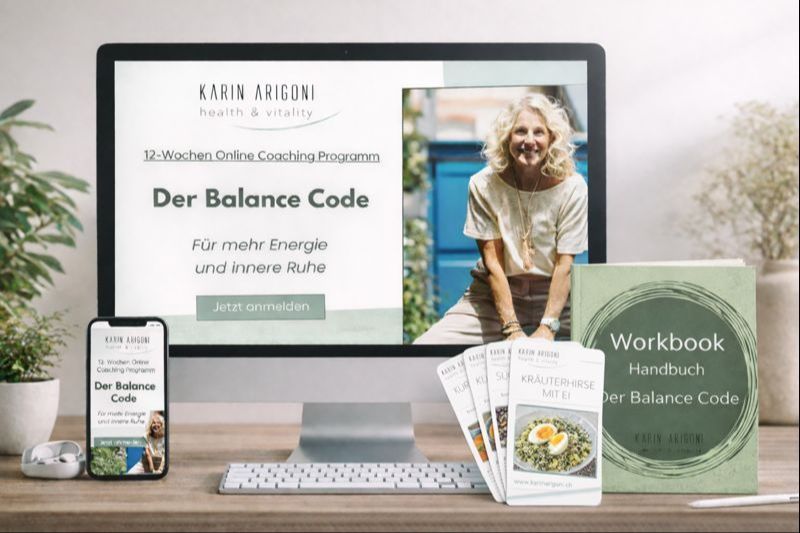 Ich bin Karin Arigoni und begleite Menschen dabei, gesund zu leben, ihre innere Balance wiederzufinden und ihr Potenzial zu entfalten. Neben meinen Aus- und Weiterbildungen zum Personal Health Coach (Universität Basel), zertifizierter Integrative Nutrition and Health Coach (IIN), TCM Ernährungsberater (Institut Avicenna Freiburg), Dipl. Gymnastikpädagogin, Dipl. Bewegungstherapeutin und Yogalehrerin bringe ich auch meine eigenen Erfahrungen mit Ungleichgewicht und mit dem Weg in die Balance mit.